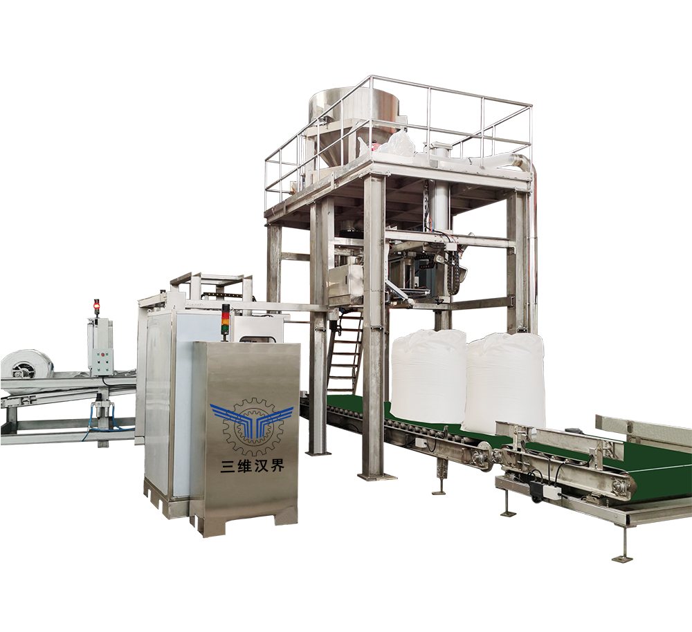 全自動噸袋包裝機,也叫全自動大袋包裝機、全自動噸袋包裝秤、全自動大袋包裝秤,是一種全自動噸袋包裝設(shè)備,全自動噸袋包裝機克服了噸袋包裝機(噸袋包裝秤、大袋包裝機、大袋包裝秤)需要人工上袋(掛袋)的缺點,實現(xiàn)了噸袋的自動上袋、物料自動稱量、自動灌袋、自動輸送、自動熱合封口、自動噴碼打印相關(guān)生產(chǎn)信息;全自動噸袋包裝機可以應(yīng)用在需要大袋包裝的任何生產(chǎn)線,可以完美替代半自動人工上袋噸袋包裝機,顆粒物料和粉體物料皆可以使用全自動噸袋包裝機實現(xiàn)物料的自動包裝盒輸送。隨著人工費用的增加,全自動噸袋包裝機的使用推廣范圍越來越大。