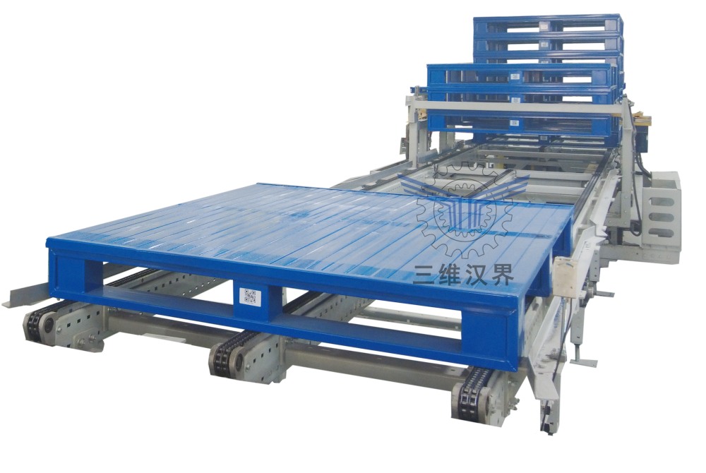 3. 托盤分離:分離裝置(如叉臂)動作,插入托盤垛,將最底層(或最頂層)的一個托盤分離出來。