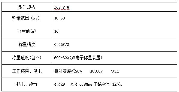 DCS-P-W型煤定量包裝機技術(shù)參數(shù):